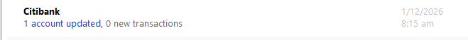 Citibank transactions have not downloaded for a week, although there is no error message. The program reports a successful update. Is anyone else having this problem?
