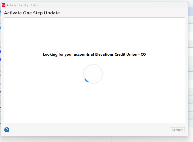 I tried signing out and signing back in, but that didn't help. I tried to reconnect my checking account, but it just sits at "Looking for your accounts at Elevations Credit Union - CO" and after several minutes, I had to end with the task manager as MGB says above