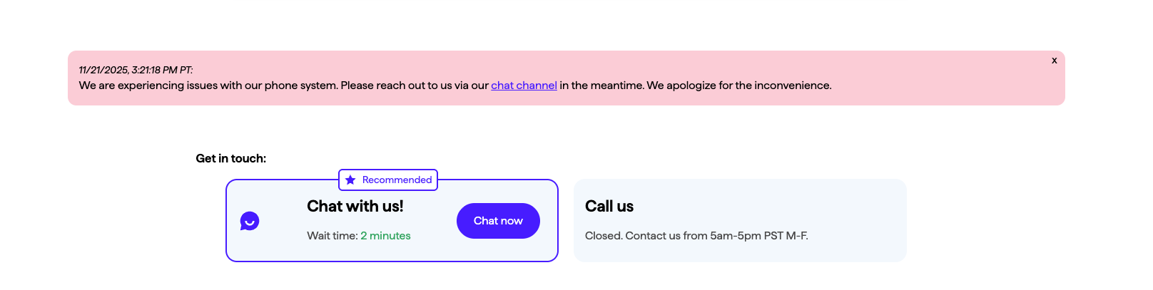 I'm sorry to hear you're encountering that difficulty contacting Support. When I check our website, I can see it's showing there are currently issues with support by phone: