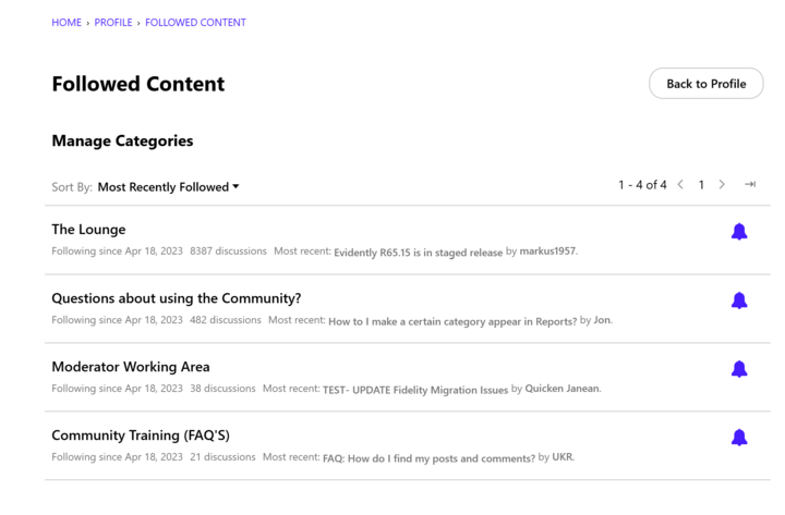 You will see a list of categories you follow, and check to make sure the notification bell for each category you wish to follow is blue.