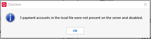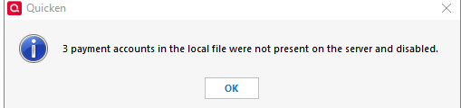Are those 3 payment accounts still showing as set up in your Quicken? To check, navigate to Tools>Account List, click the Edit button next to one of the accounts, then choose the Online Services tab. If Quicken is not seeing it as set up, then in the Online bill payment section, it will show No and have a blue Set up Bill Manager link.