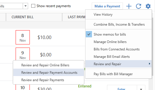 Repeat for the other 2 accounts. If the accounts aren't set up anymore, you can use the blue Set Up Bill Manager link to get them set up.