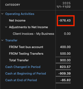 The problem I am seeing is that the report isn't calculating correctly and is double counting transfers in the cash changed in period. I attached an excel to show what is going on but to summarize if I have net Income of $100 and transfers of $(100), I should have cash changed in the period of $0 but Quicken is calculating it to be (100) and I have pinpointed that the problem is the transfers. I spoke with a representative and we disconnected before figuring it out.