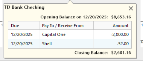 I have had this problem for some time. With one specific bill reminder, the projected balances screen shows inaccurate data. See the snip for details. This only happens with the Capital One bill, and it skews the forecast until I enter it.