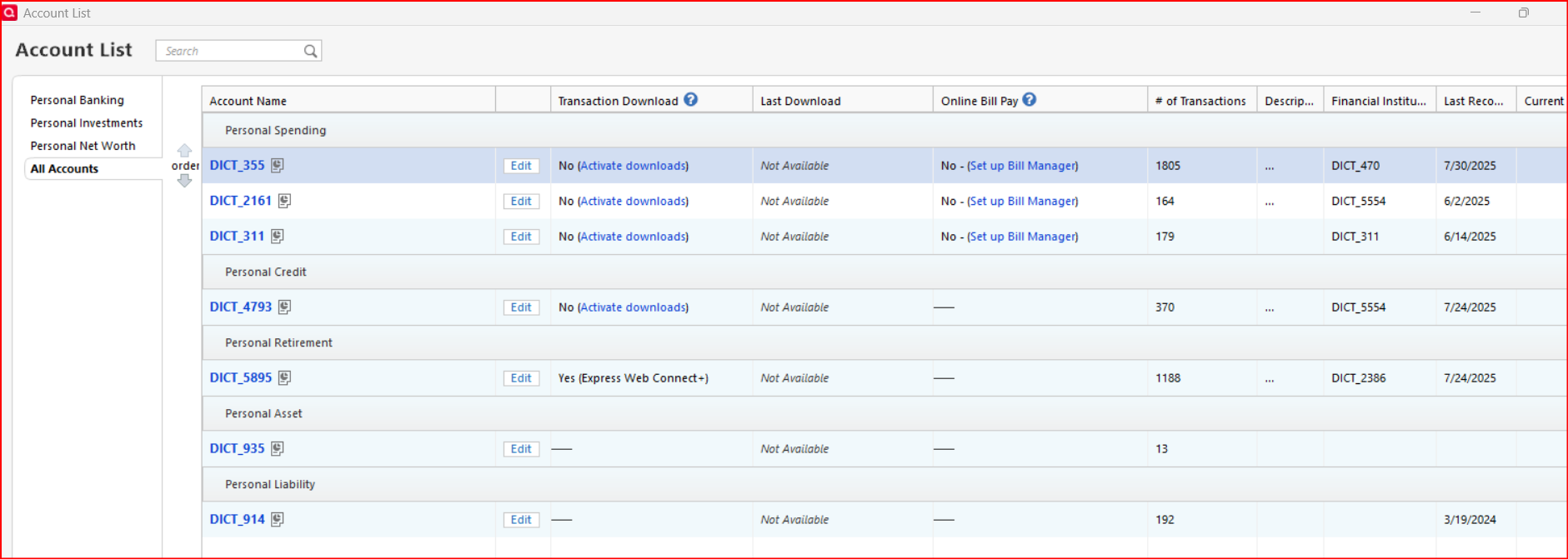 Also, I think it needs to be confirmed whether or not there are any duplicate transactions in the register (they will usually show up within the 90-days prior to the last connection change/modification). Delete any duplicates that are found.