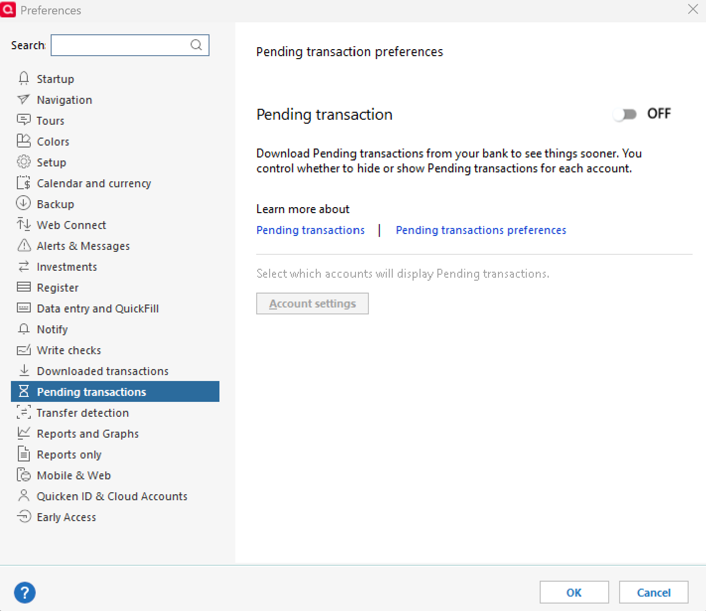 Pending Transactionsenabled or disabled inEdit > Preferences > Pending transactions