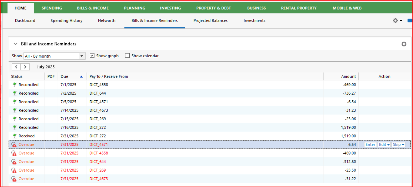 I am having the same problem. I think it’s a bug as I have been using Quicken since DOS and I’ve never seen this before.