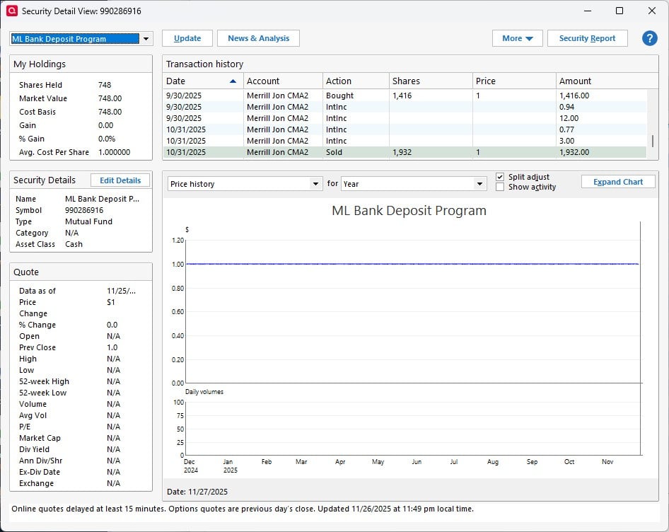 It's Merrill CMA account that has a low monthly transaction volume, so I wanted to customize it now rather than wait for the next download. Supposedly, your $1 per share valued positions should appear in the drop down, but none do for me, and there should be. Snips attached.