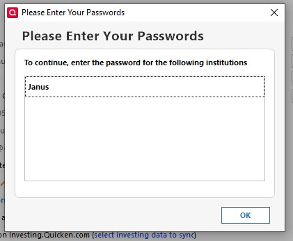 Well it has been 3 months now without a solutuion to this problem. Are the Quicken users on ignore? Will this ever get some priority? Quicken is mostly useless to me until the Janus Password Error id fixed in the current version for Windows Desktop. HELP !!! 😩😡