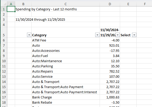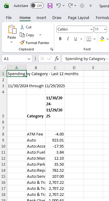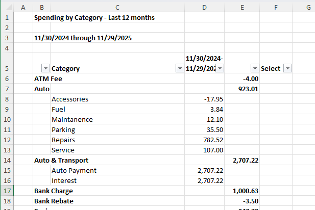 When a Spending by Category report is viewed in Quicken, the main category line includes the subtotal in bold for the whole category and the sub-categories are indented. When the report is exported to Excel, the indenting and bold font is lost. This makes filtering and subtotaling the data difficult. Is there a way to preserve the indenting (by putting the sub-category and totals in the next columns?