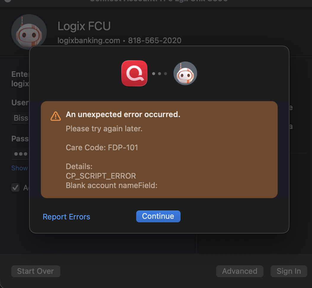 @Quicken Alyssa, I followed the instructions for FDP-187, disconnected all 5 accounts. Again, my 2 connected fine and my wife's 3 accounts gave the same error.