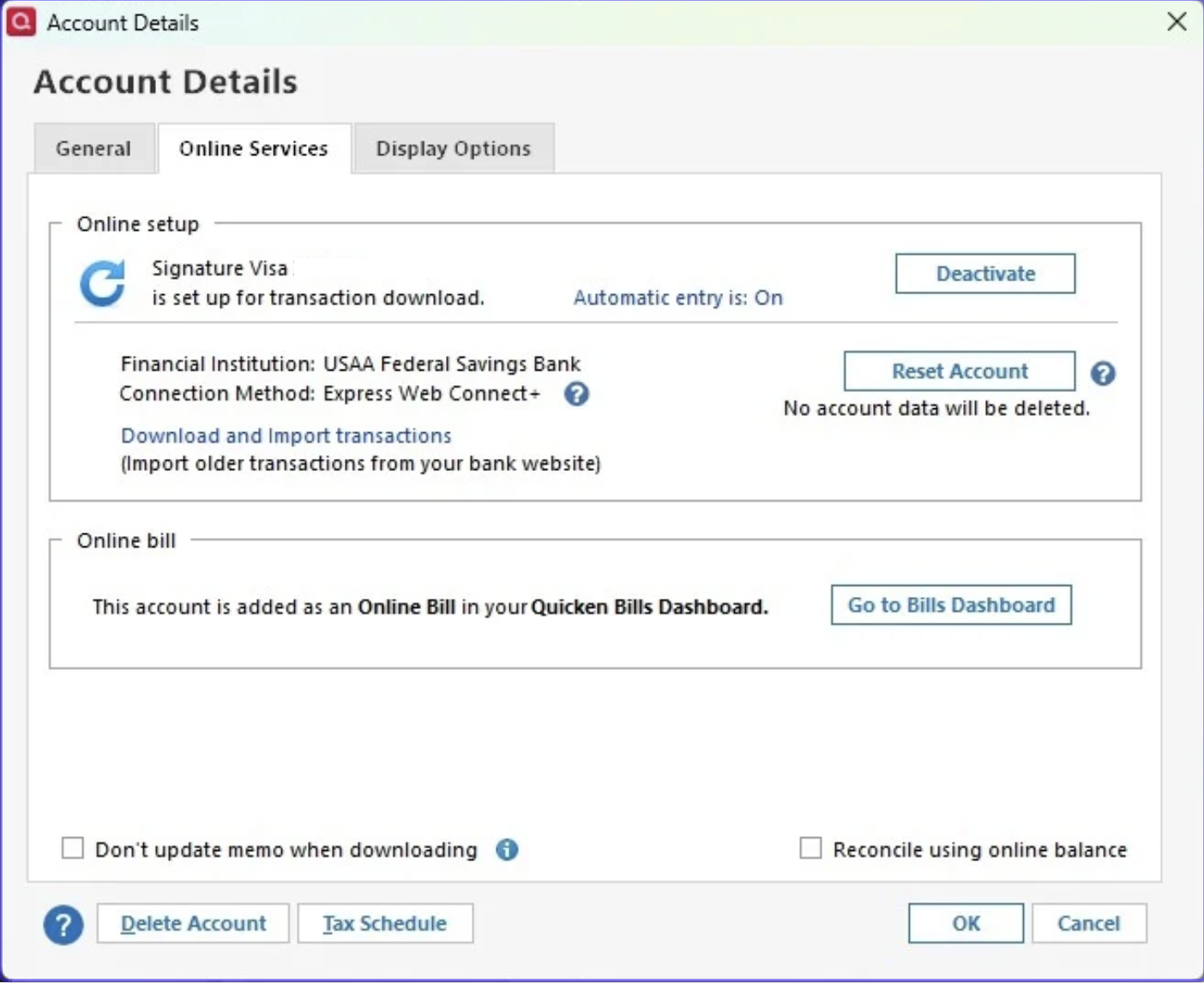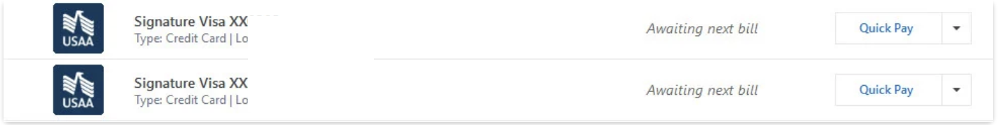 I run Windows 11 and Quicken Desktop Subscription (R65.17) app. I always pay my bills manually and use the Bills & Income planner as a reminder as to when my bills are due. After the most recent update to Quicken, my USAA credit card accounts now show Quick Pay in the Actions button.