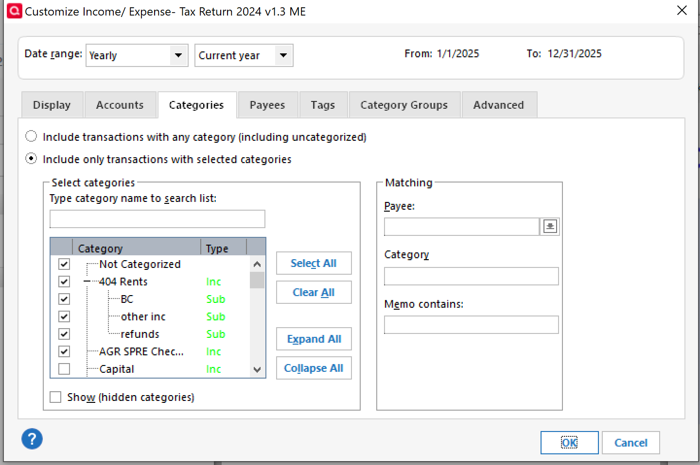 I did have a prior issue about modified categories (newly checked or unchecked) not being saved in the report.