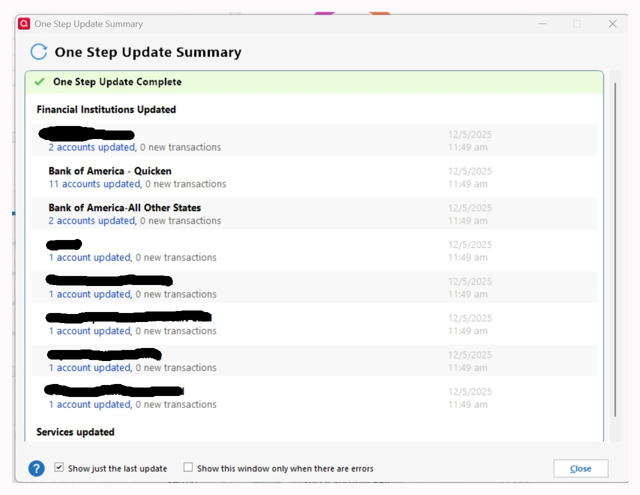 What is puzzling is that the two savings accounts are now connected twice using - All Other States and - Quicken. It appears I missed them announcement regarding decommissioning - All Other States.