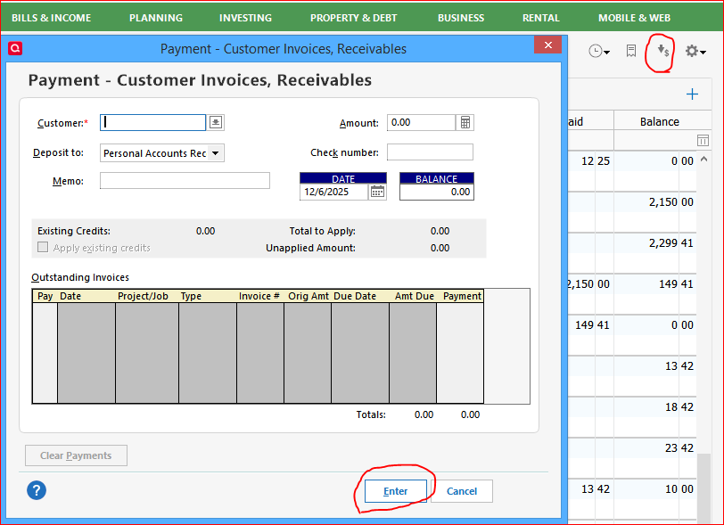 2) The invoice Payment form seems to open in the center of the monitor screen, rather than the the center of the Quicken window. As a result, it's always covering up part of my source file, requiring me to reposition it every time. It would be better to center on the Quicken window and/or remember where the form was moved in the previous payment entry.