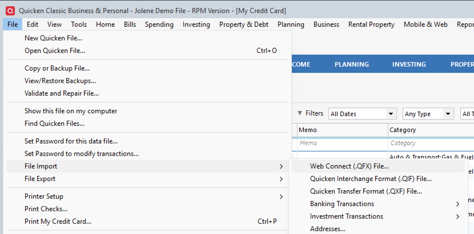 - Importing QFX files - now working after uninstalling and reinstalling Quicken.