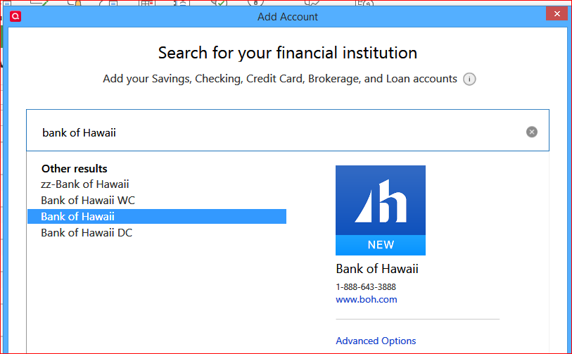 Bank of Hawaii "unable to verify financial institution" error