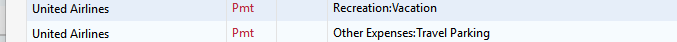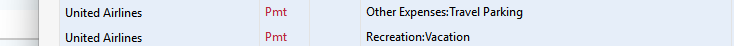 The first observation is that in my experience when the Payee names are the same the second, third etc. names are left blank and only the subsequent categories were listed. Thus the second United airlines name would be blank. This is an example