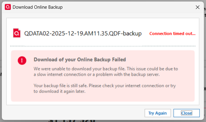 Quicken Online Backup Issues