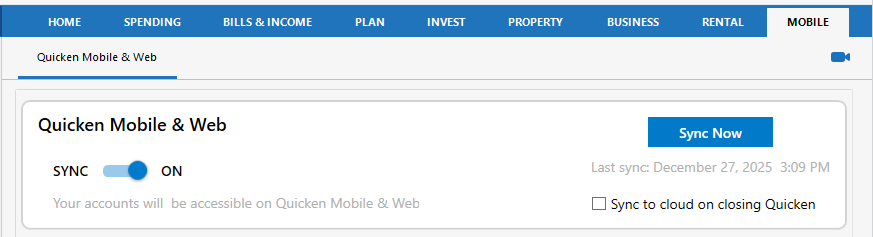 After the refresh completes, please close the Quicken program, re-open it, and sync with the cloud. You can initiate the cloud sync from the Mobile tab or select it in One Step Update Settings, then run One Step Update.