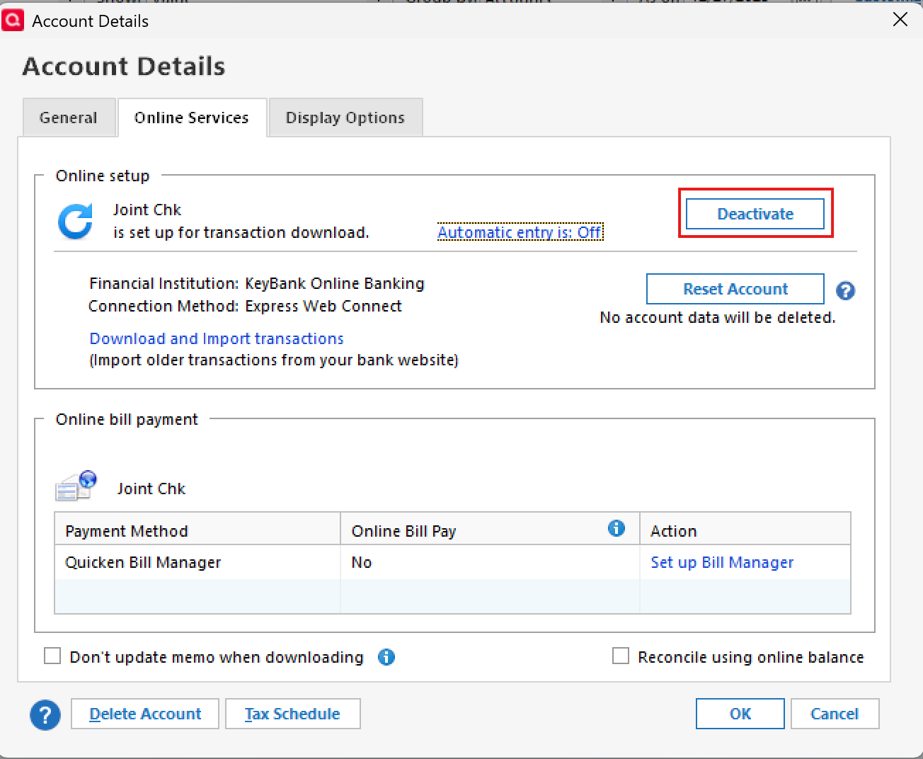 • On the Online Services tab, click Deactivate. image.png
