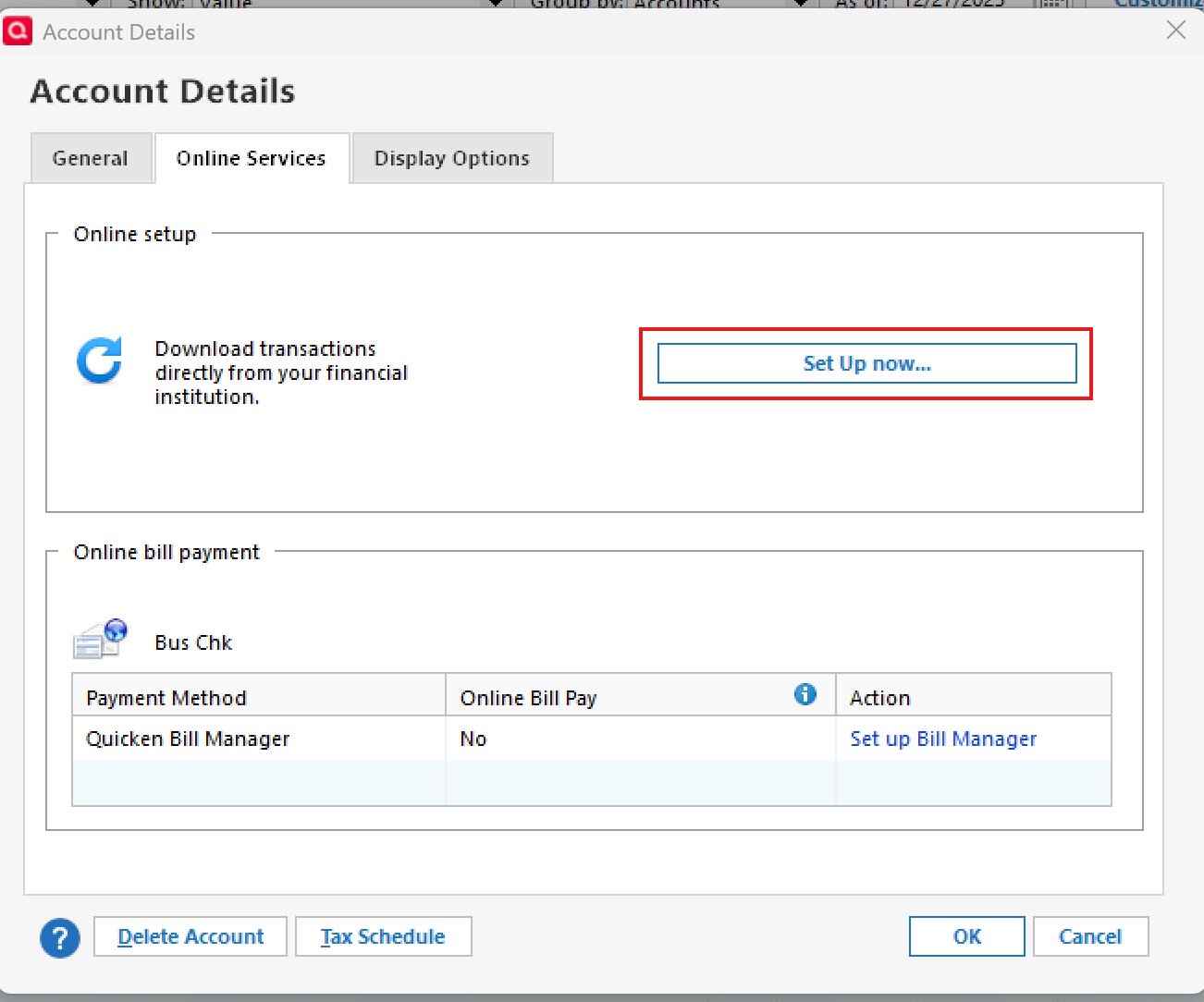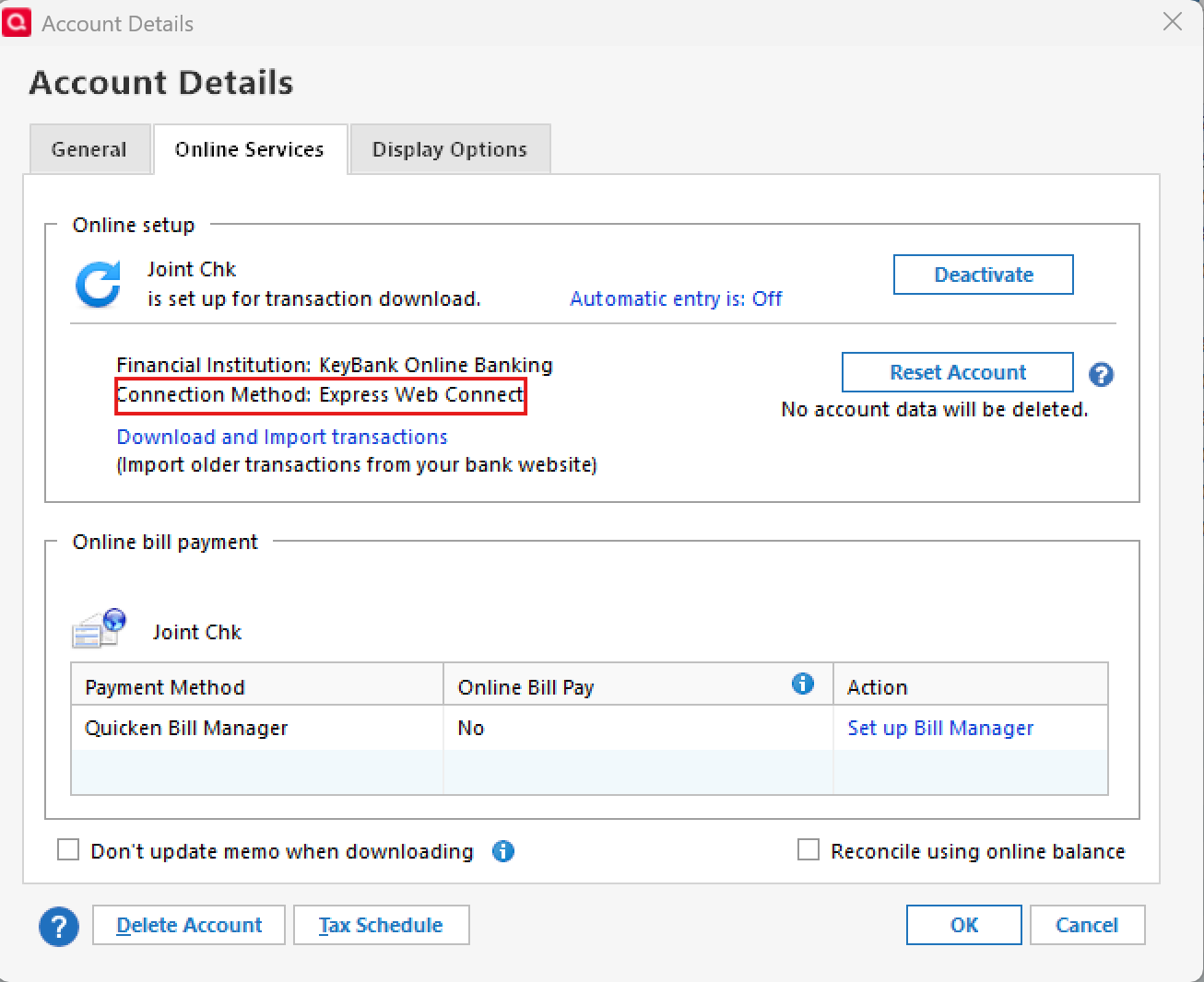 • After relinking, open the account register and select Account Actions > Update Now to refresh the connection.