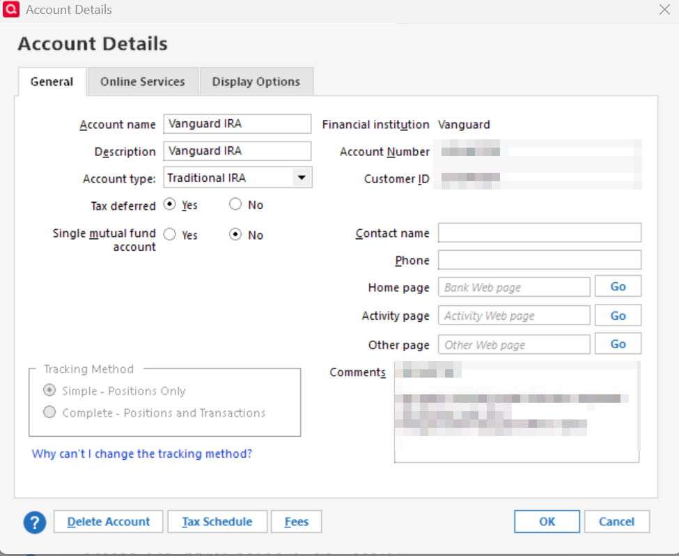 • Log in to Vanguard’s website or contact them directly to confirm that both the Traditional IRA and Roth IRA are enabled for third-party access / Quicken downloads.