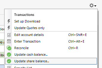 What is incorrect about the past transactions? What is not adding up? If needed, you can adjust share balances and you can adjust the cash balance. You can do that from the transaction register of the investment account by clicking the gear icon near the upper right and selecting the appropriate option.