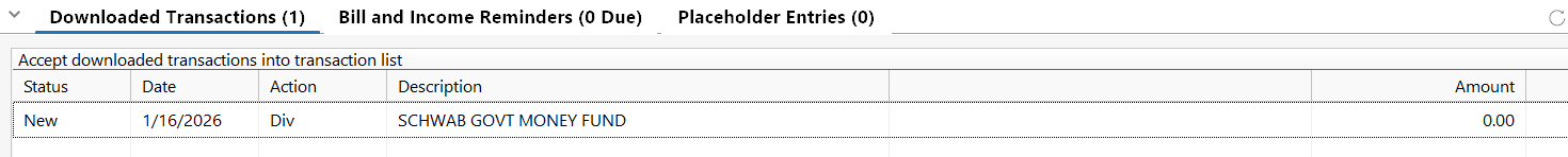Share balance remains 0 even after accepting buy/sell transactions - show it downloads transactions that change share balance in Quicken, but Schwab reports: 0