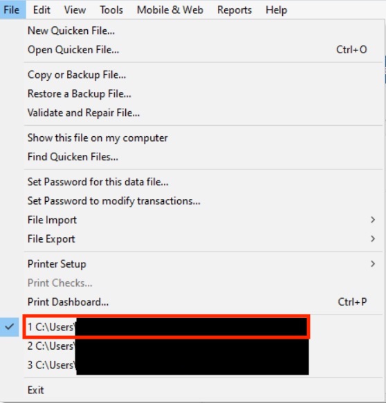 Thank you for reaching out! To help troubleshoot, please provide more information. Do you keep your Quicken file on your local hard drive? What is the exact file location you keep your Quicken file at? You can check this in your Quicken by navigating to the File menu option and finding your file in the list of the most recently opened Quicken files, just above the Exit option. The file you're currently in should be in the top spot.
