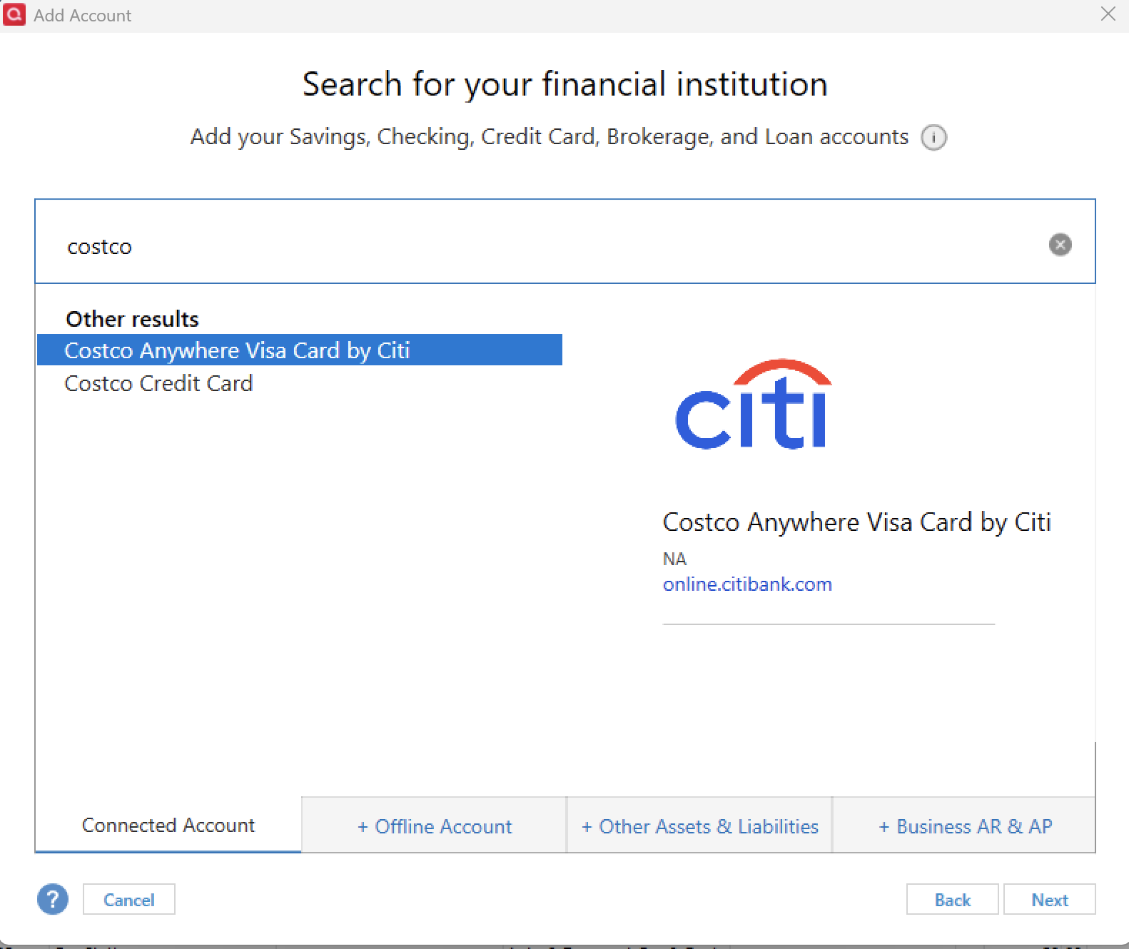Once you are redirected back to Quicken, if any other Citibank accounts are listed to add to Quicken, be sure you select LINK to existing if the accounts are already in Quicken.
