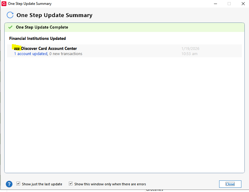 Thank you for reaching out! To clarify, does the One Step Update Summary claim that the transactions downloaded, or is it acting like there were no new transactions?