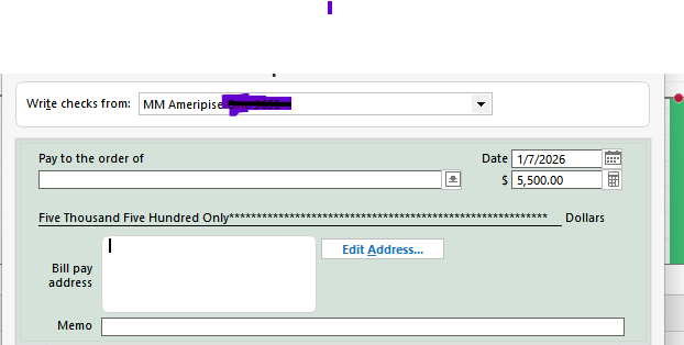 The check is from an entry 1/13/2016 (year is not a typo). I've never seen this before. I have never used Quicken to write checks.