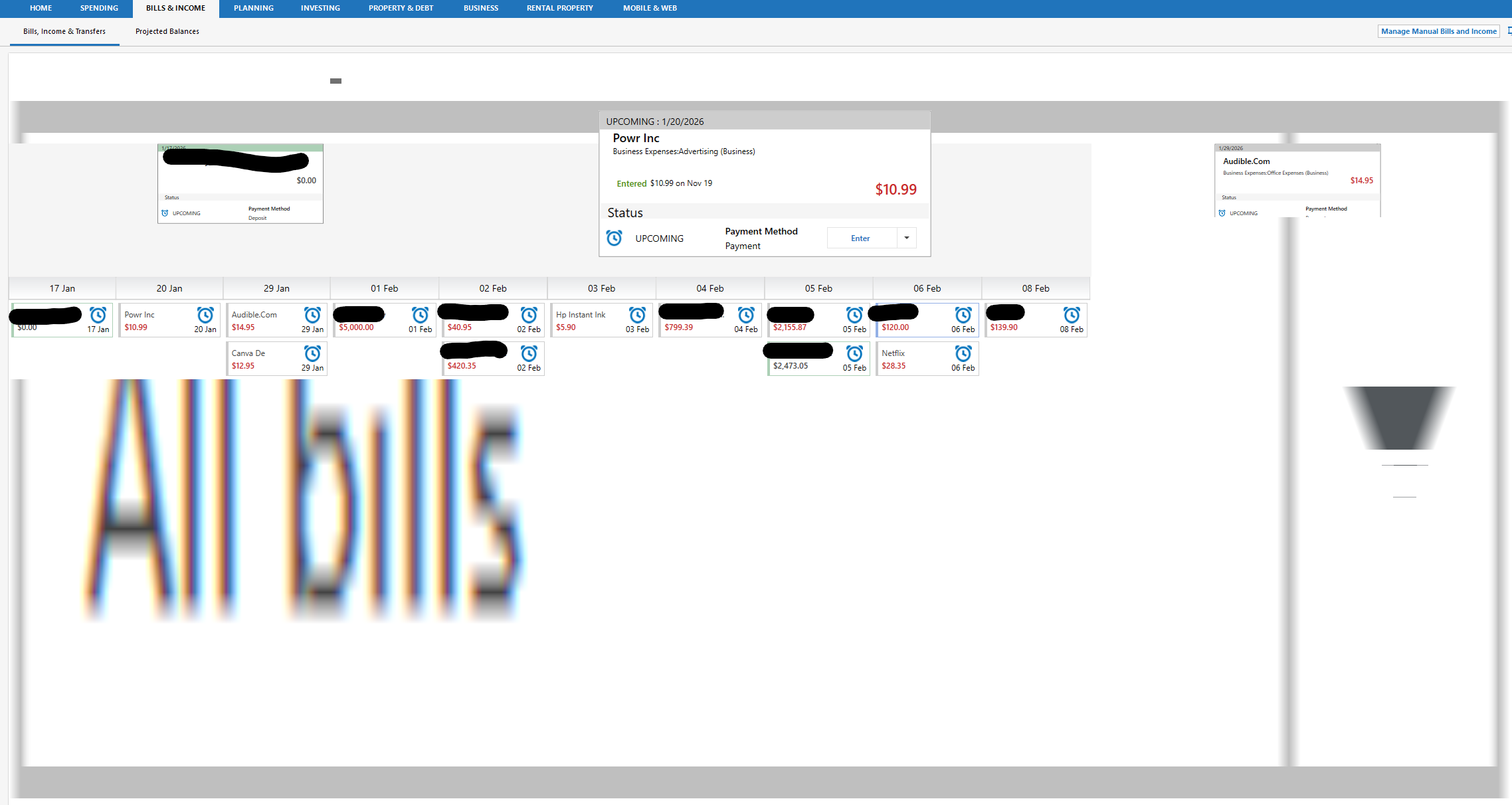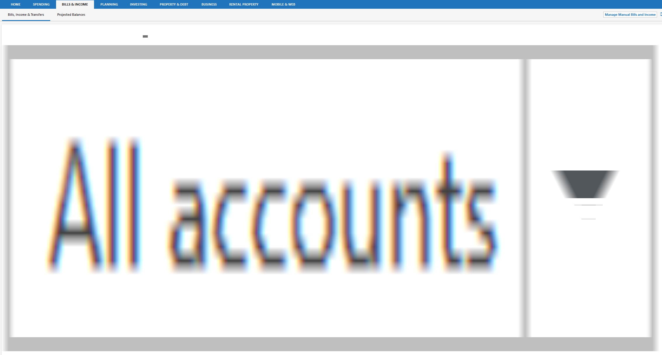 Clicking to SPENDING and then back restores the screen to the right view. But then clicking Projected Balances and then back to Bill, Income & Transfers results in a slighty different distorted version of the second picture.