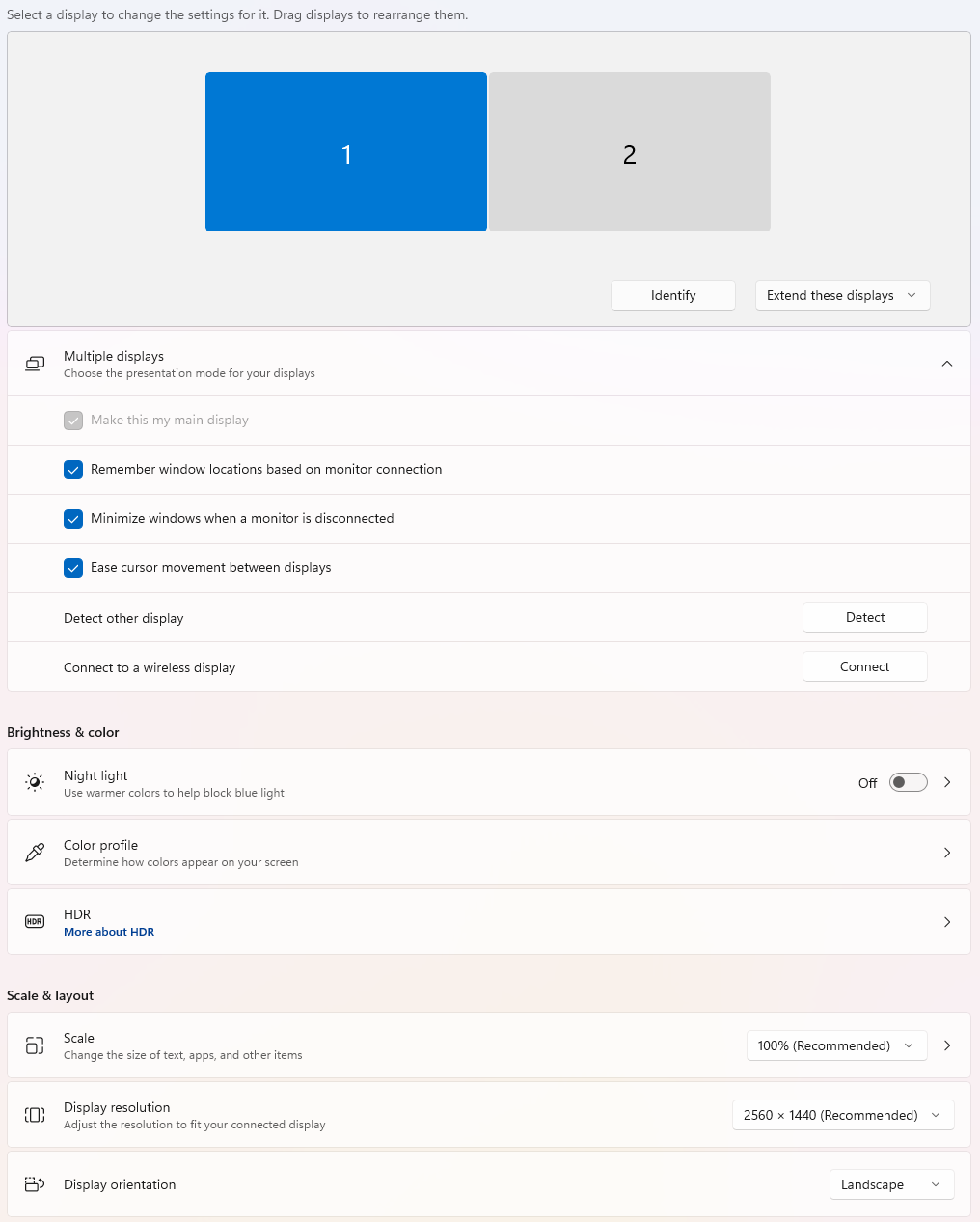 I'm using the latest approved, WHQL drivers. Windows 11, latest edition, on a relatively new computer (i13600k CPU). This is running full screen on one monitor of a dual 27" monitor setup; however, both monitors are at their native 2k resolution. Scaling is set at 100%.