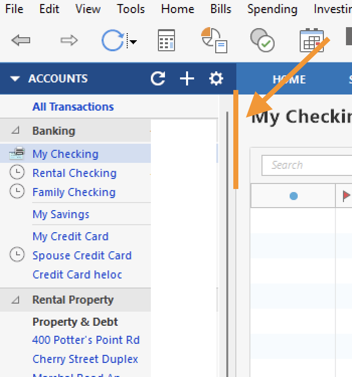 When I hold my mouse on the line separating the scroll bar and the register, it turns into a double-sided arrow. I can then click and drag the side panel to adjust it.