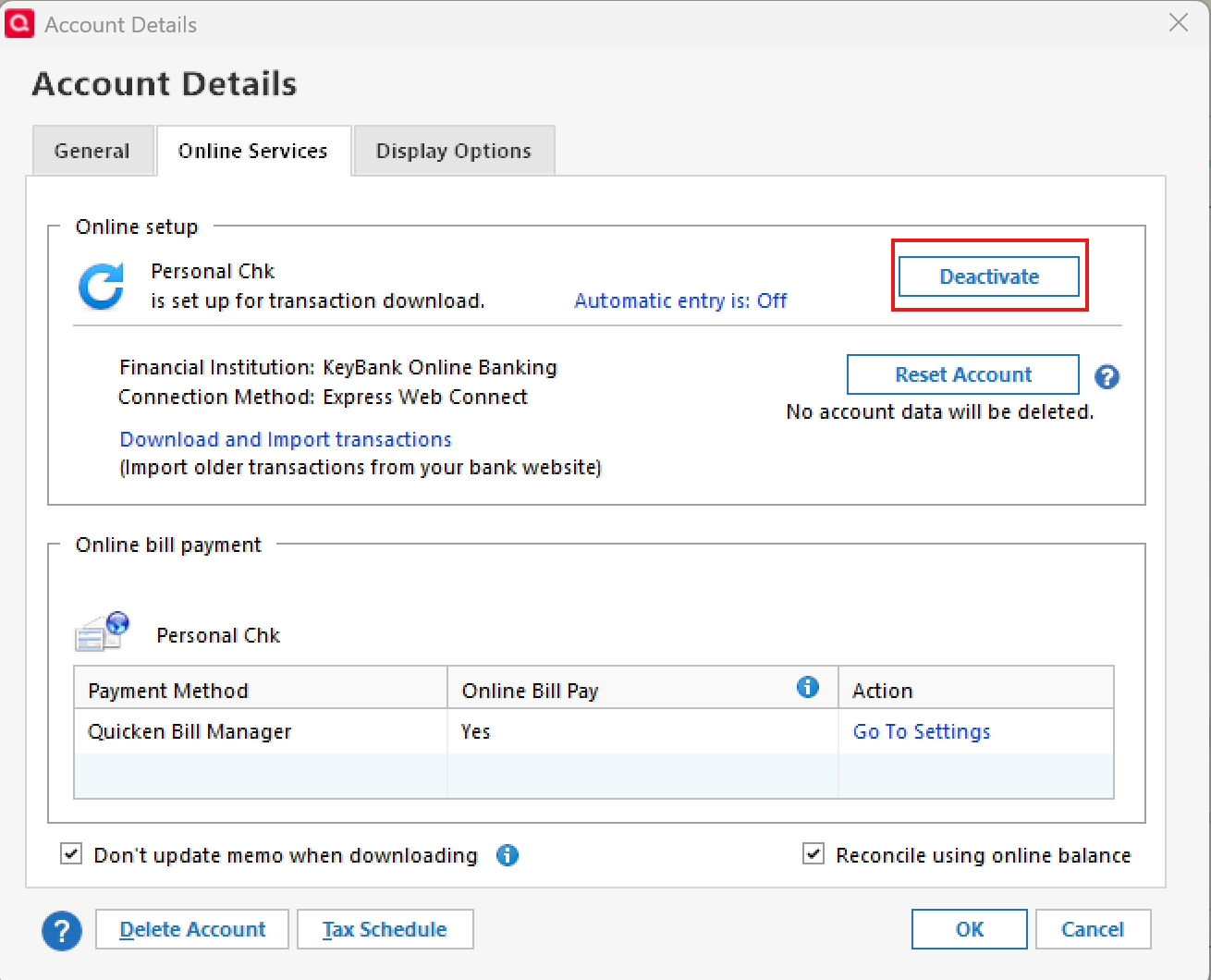 - Repeat these steps to deactivate all accounts at this same bank.