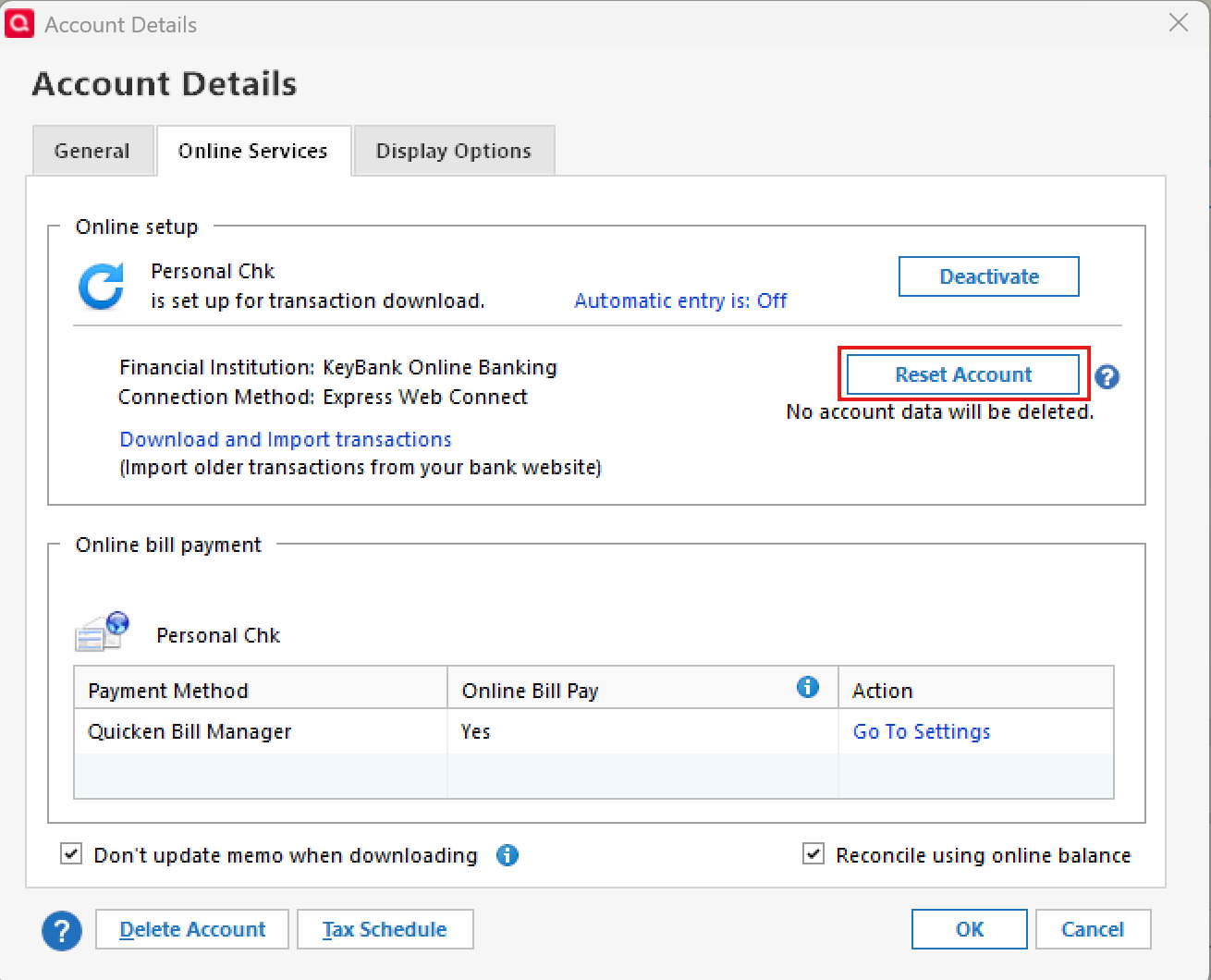- Return to the Online Services tab and click Set up Now for each account you've deactivated.