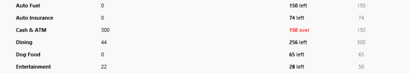 Green spending/budget graph issue