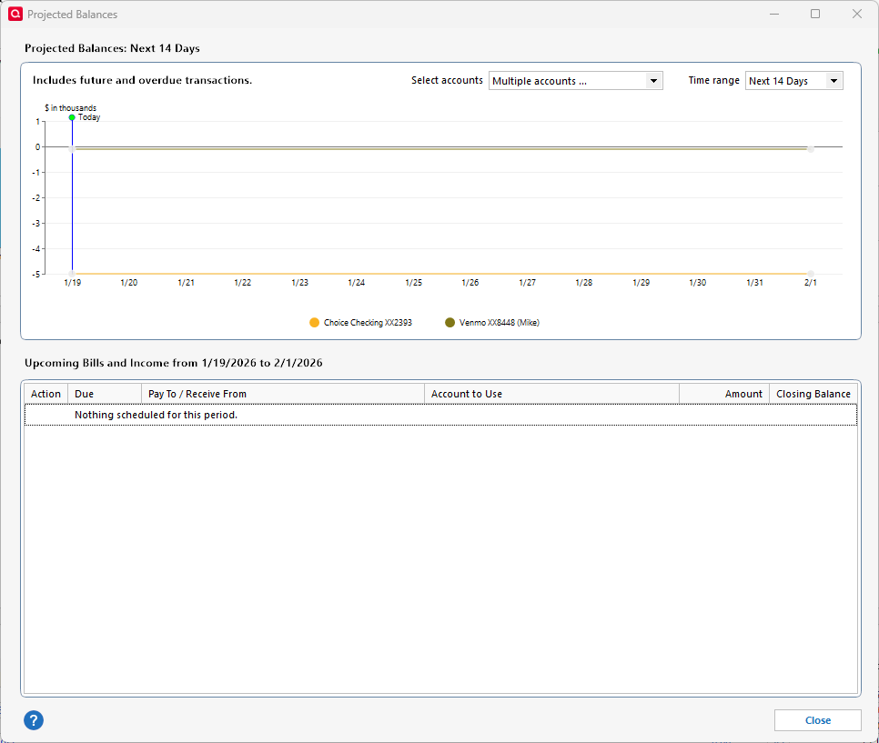 And the running balance in the projected balances window still doesn't agree to what it says is left.