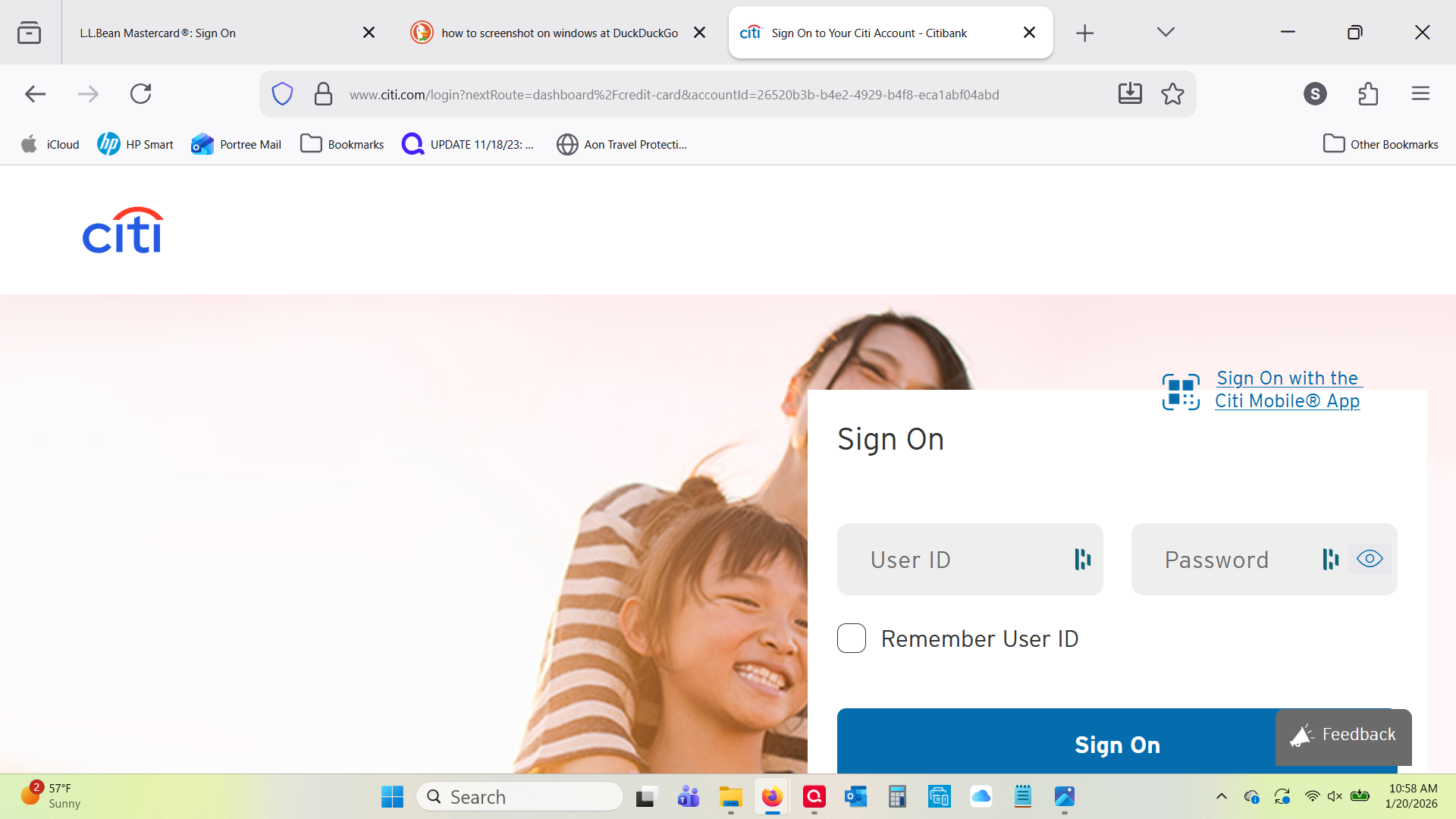 If I go directly to the L.L. Bean Citi card site with the new link (as seen in the screen shot), I get in with no problem. (third screen shot)