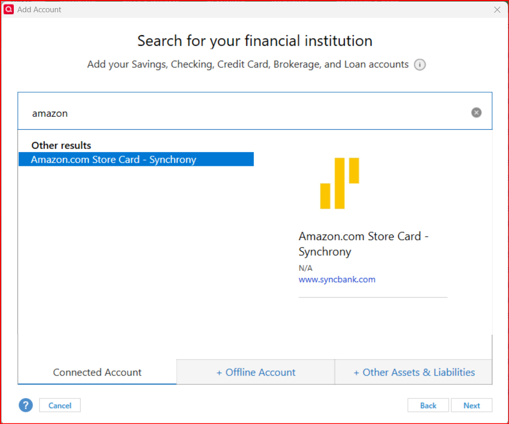 How do i link my Amazon Prime Store Card/Synchrony with my Quicken account?