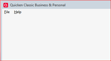 Does Quicken start and give you at least a Quicken banner at the top and the File and Help Menu items?
