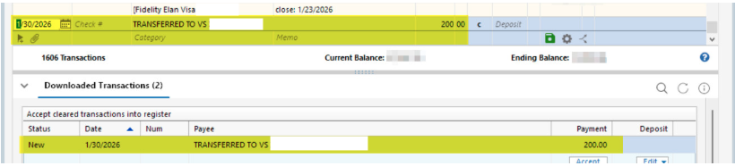 Yes. I manually correct them. Just an FYI. I have transfer detection activated in Quicken but it doesn't seem to recognize the transfer. I don't really know how transfer detection is supposed to work. Does it work prior to the downloaded transactions being accepted or do the transactions first have to be accepted?