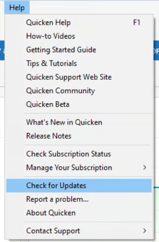 - Make sure Quicken is fully up to date by going to Help > Check for Updates