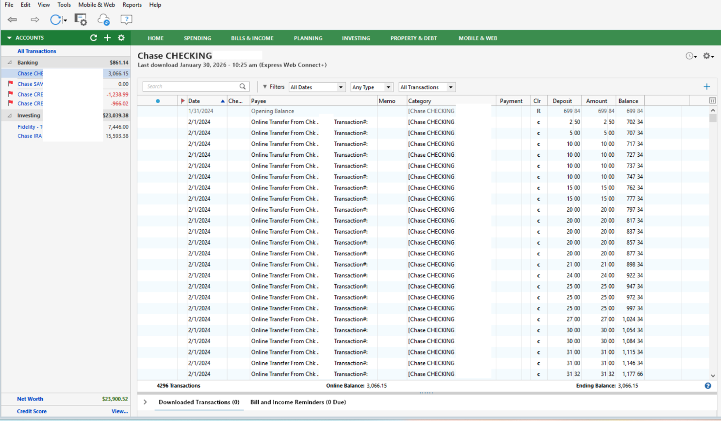 While Chase was the problem account in the example I provided, in my previous thread there were several accounts with this problem. It was also happening with Navy Federal Credit Union and PayPal too. (I should go back and read my old thread.)