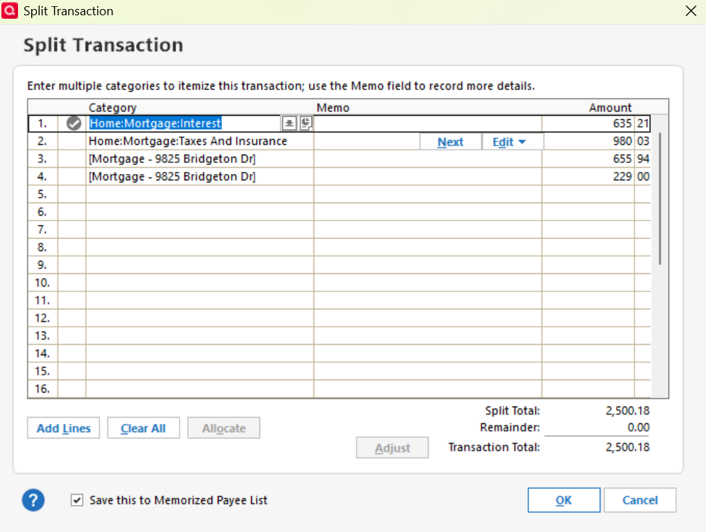 Did you use the mortgage wizard? Is this a memorized transaction? What?