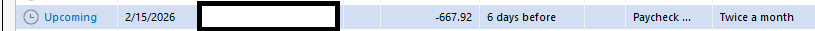 Paycheck reminder is a negative amount.