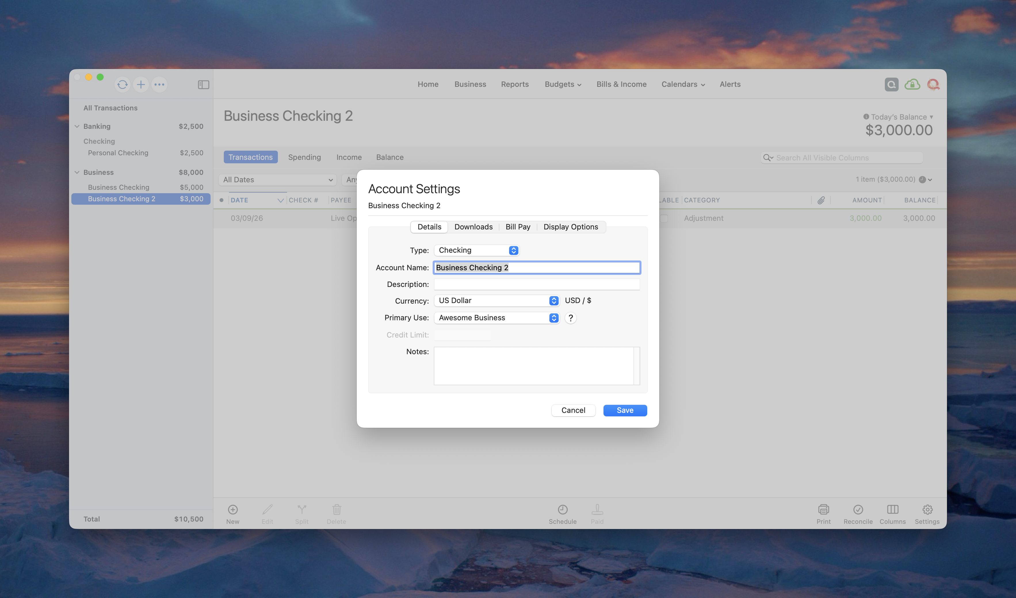 Now that you are on Classic Business & Personal for Mac, when you create a new account and you specify its primary use as a particular business, it will automatically set the business you select as primary use on the opening balance transaction.