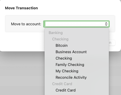 6. Click on the Move to account dropdown and select the desired account.